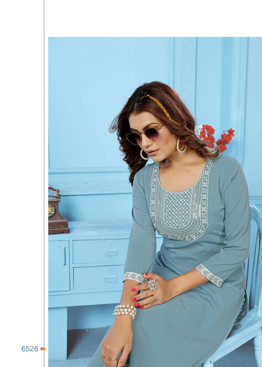 Light Blue Jari & Mirror Work Kurta Set With Pant & Dupatta