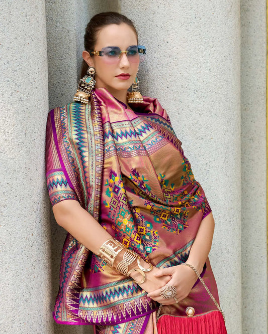 Peach Tissue Silk Saree with Zari Weaving & Contrast Border