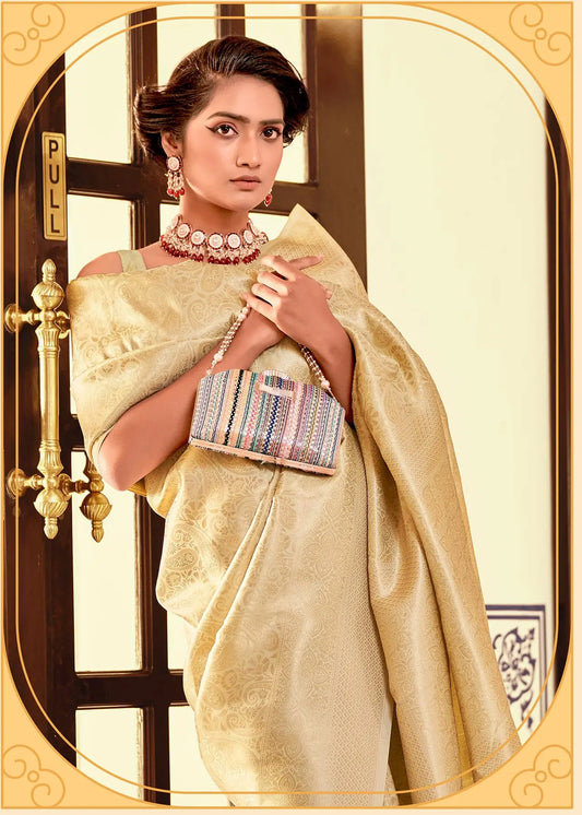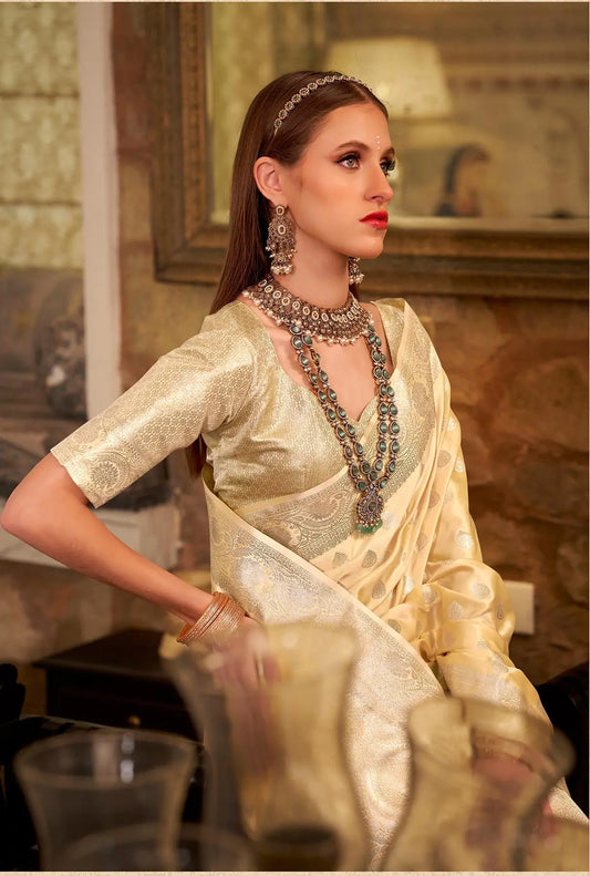 Yellow Tissue Silk Saree with Woven Butta Work