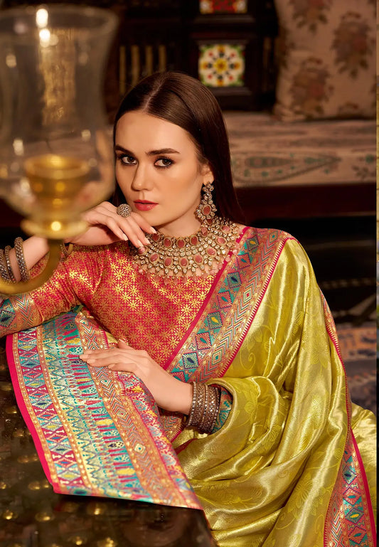 Yellow Tissue Silk Saree with Designer Contrast Border