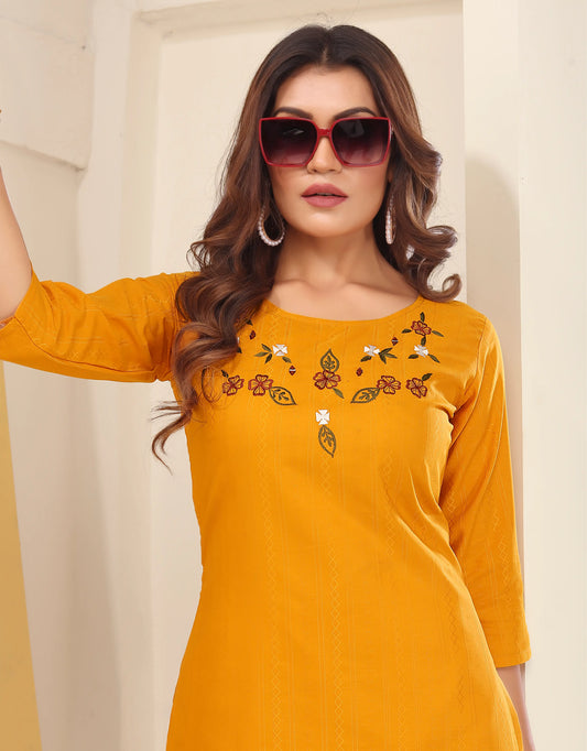 Yellow Rayon Kurta Embroidery With Mirror Work