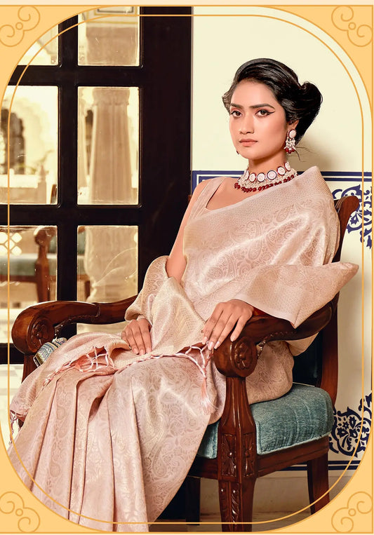 Light Pink Soft Kanchivaram Silk Saree with Zari weaving