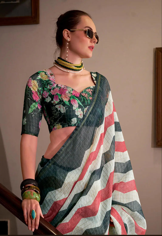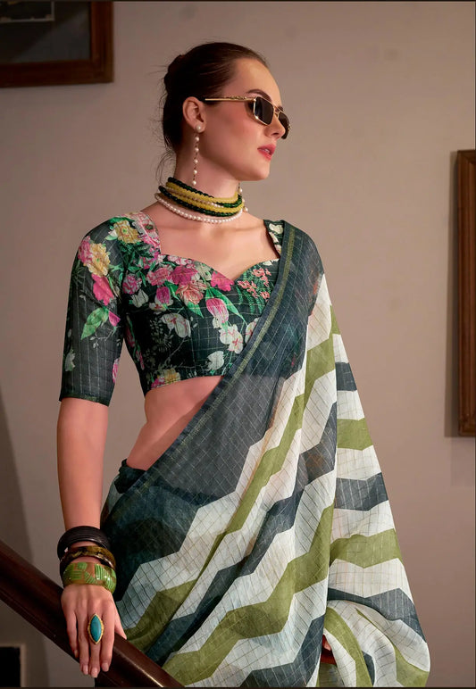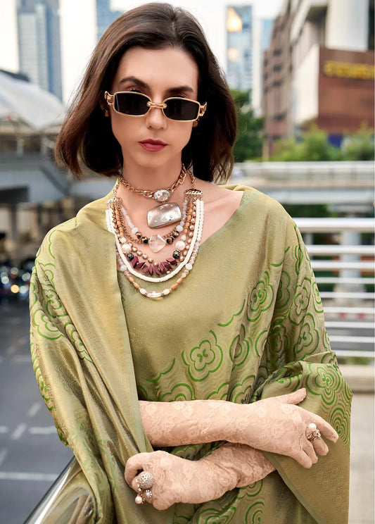 Dusty Green Handloom Kanchivaram Silk Saree with Zari Weaving
