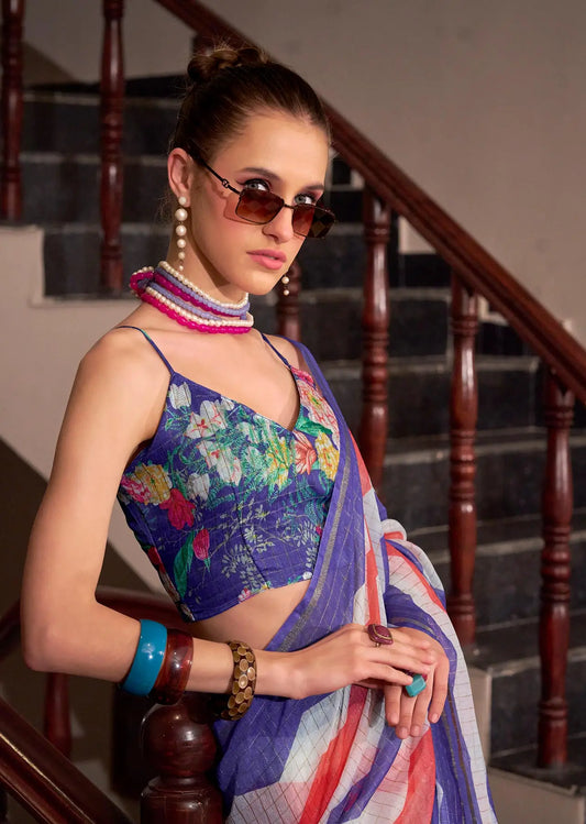 Aqua Blue Zari Tissue Handloom Silk Saree