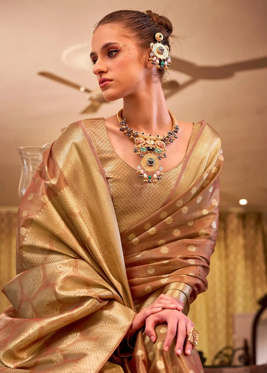 Beige Tissue Silk Saree with Zari Weaving & Contrast Border