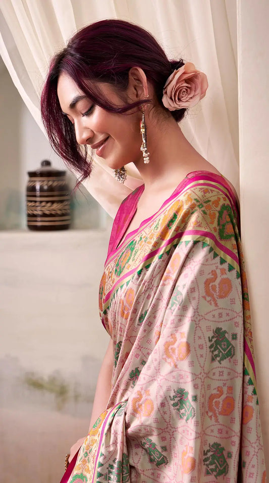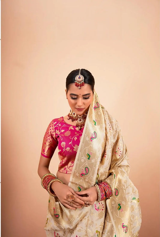 Beige Paithani Silk Saree with Zari Border & Rich Pallu