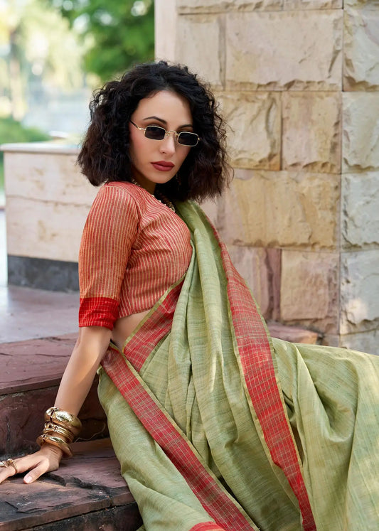 Green Paithani Silk Saree with Zari Border & Rich Pallu