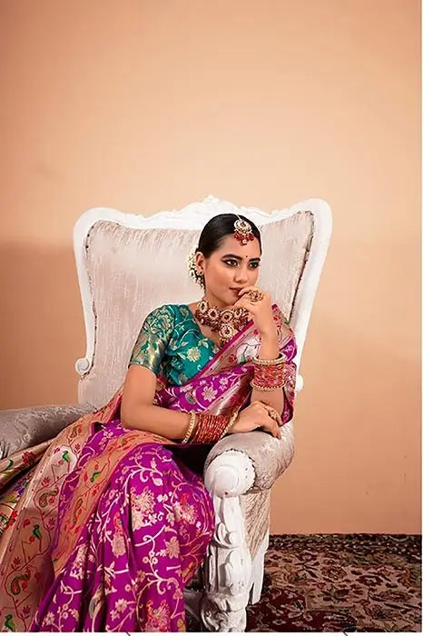 Purple Paithani Silk Saree with Zari Weaving & Rich Pallu