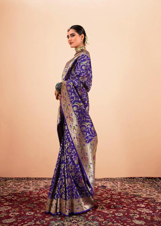 Dark Purple Paithani Silk Saree with Zari Border & Rich Pallu