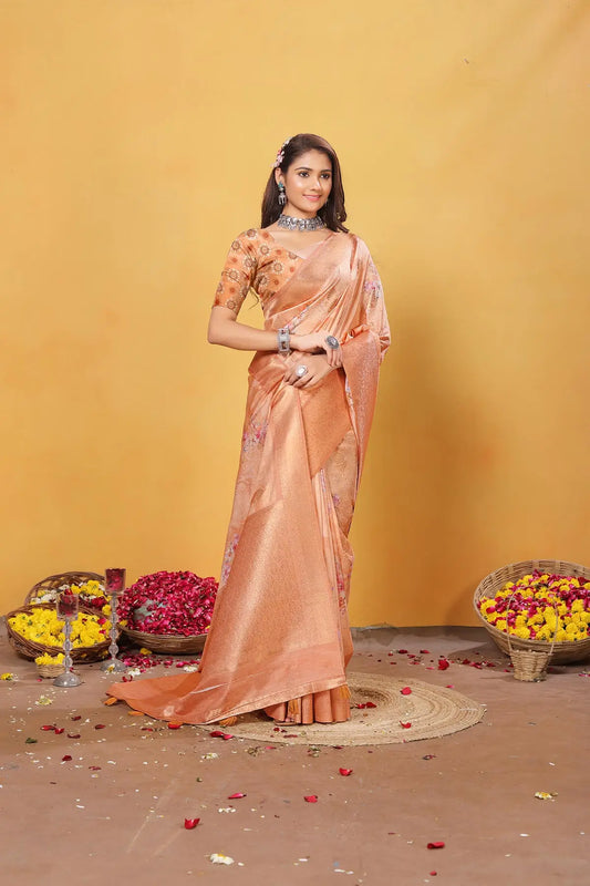 Orange Soft Bamber Weaving Saree with Digital Print & Rich Pallu