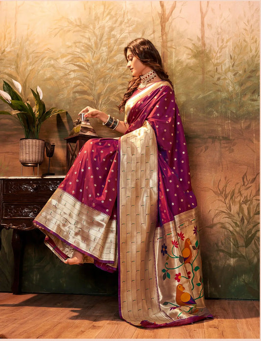 Purple Paithani Silk Saree with Zari Weaving & Rich Pallu