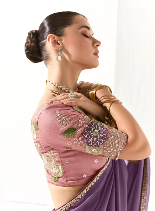Lavender Organza Saree Blouse With Heavy Embroidery work
