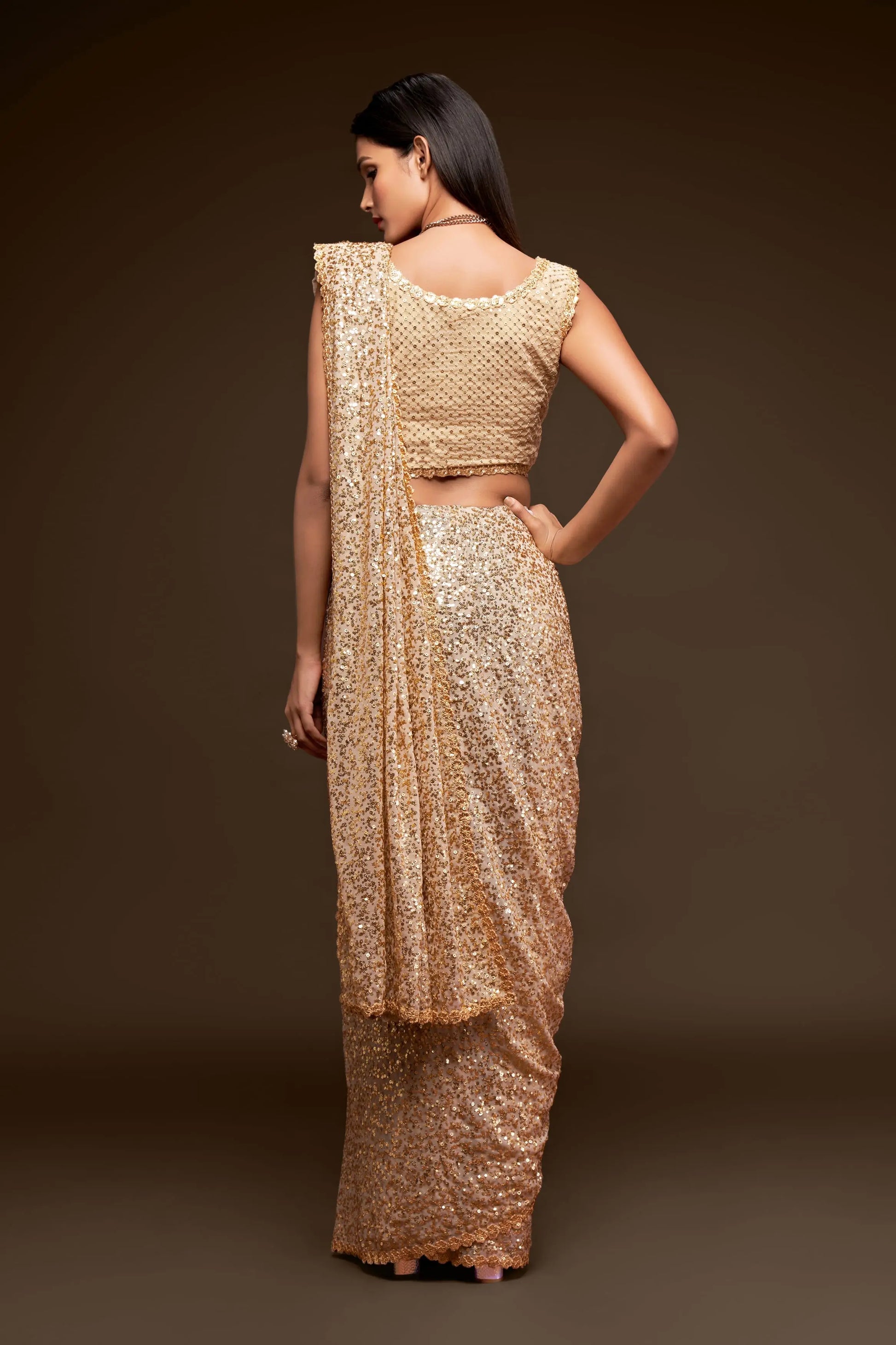 Ancient Ivory Georgette Saree with Thread And Multiple Sequins Embroidery Work