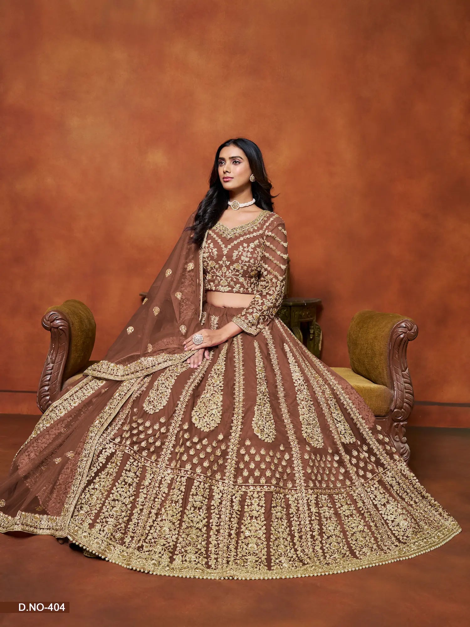 Brown Net Lehenga Choli With Thread & Sequence Embroidery Work