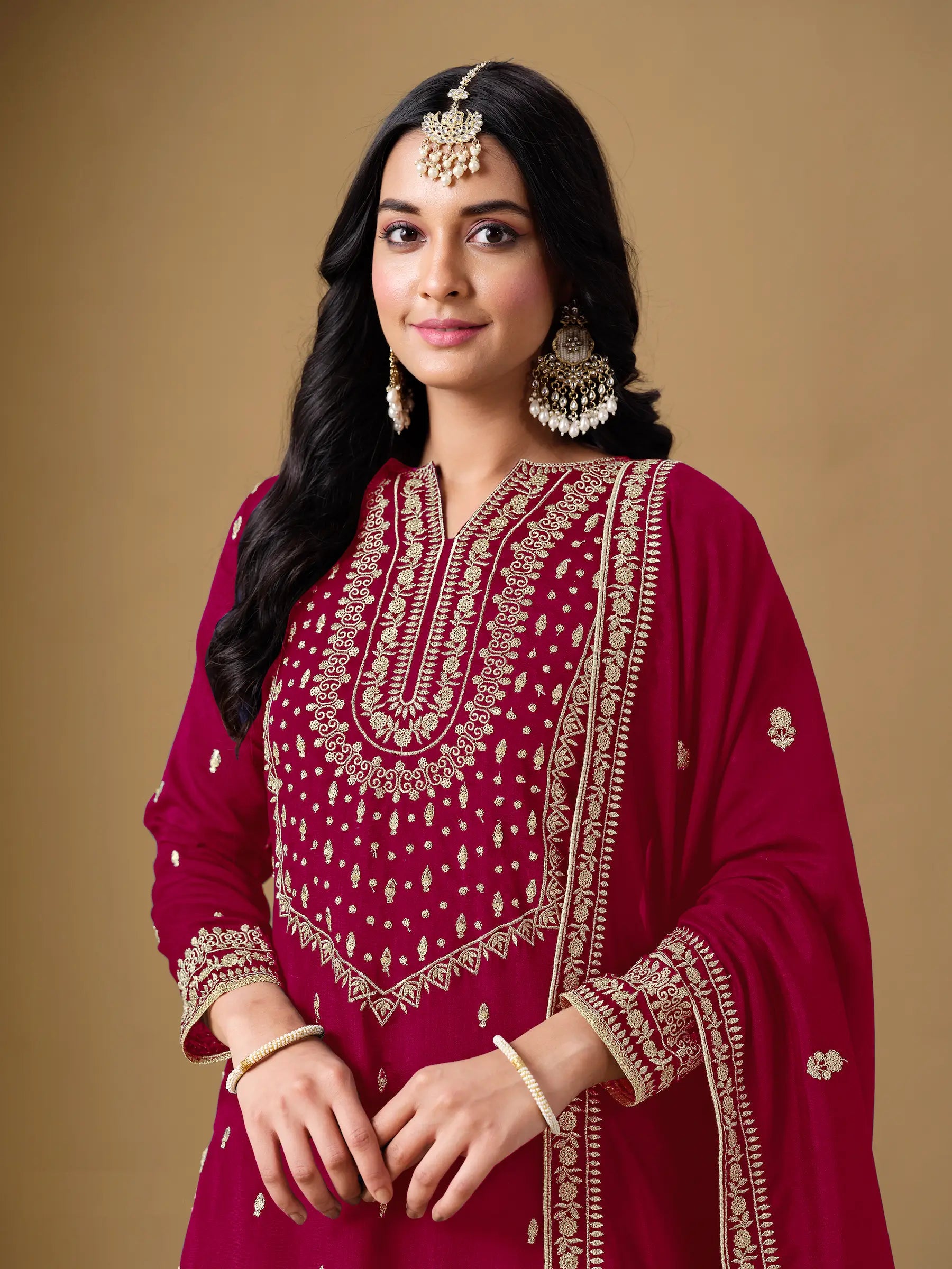 Dark Red Art Silk Sharara Suit With Thread & Sequins Embroidery Work