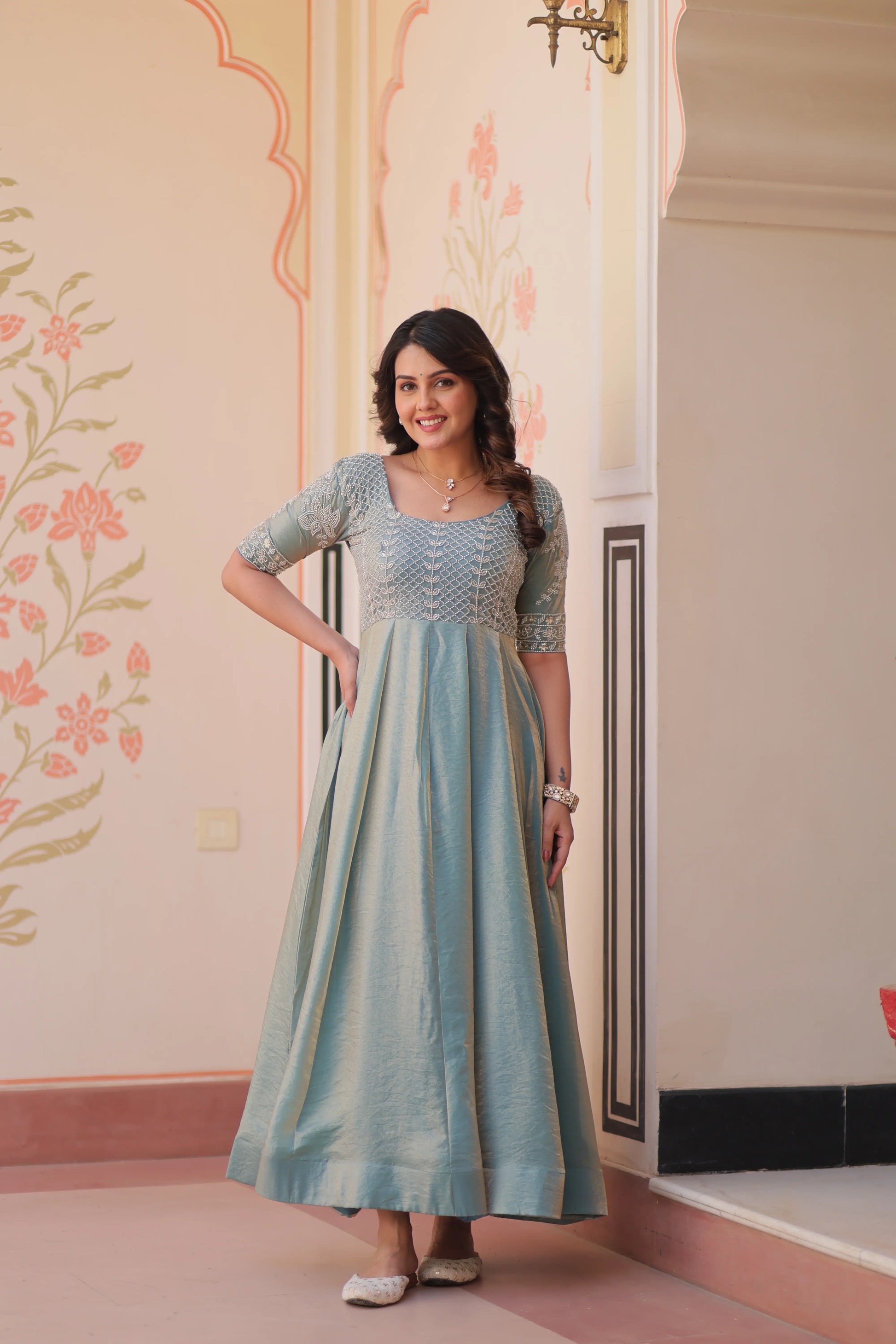 We are thrilled to unveil our latest Gown Collection, Crafted from fendy fabric, each gown offers a luxurious yet comfortable feel. Vibrant Beads embroidery work add a touch of elegance. Perfect for weddings, festivals, or any special occasion, this collection blends style with ease effortlessly.