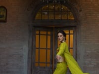 Florescence Yellow Georgette Embroidery Work Co-ord Set