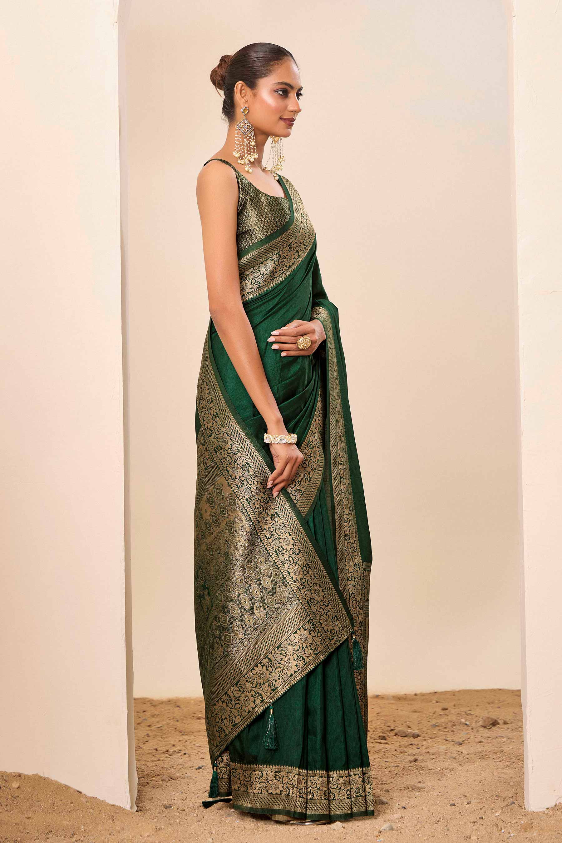 Green Dolla Silk with Wevon Galla Designer Work Saree