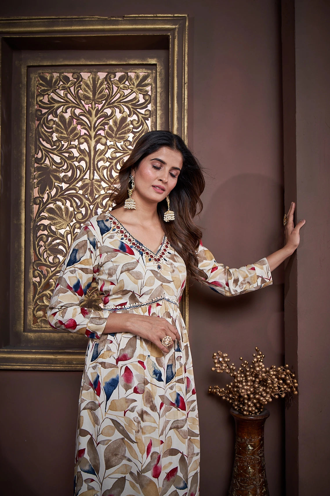 Experience our kurta set, featuring a straight-cut kurta with intricate handwork, paired with comfortable pants and a matching Najmin with Four Side Printed Lace Dupatta.  Perfect for daily wear, it offers both style and ease, making it an ideal choice for various occasions.