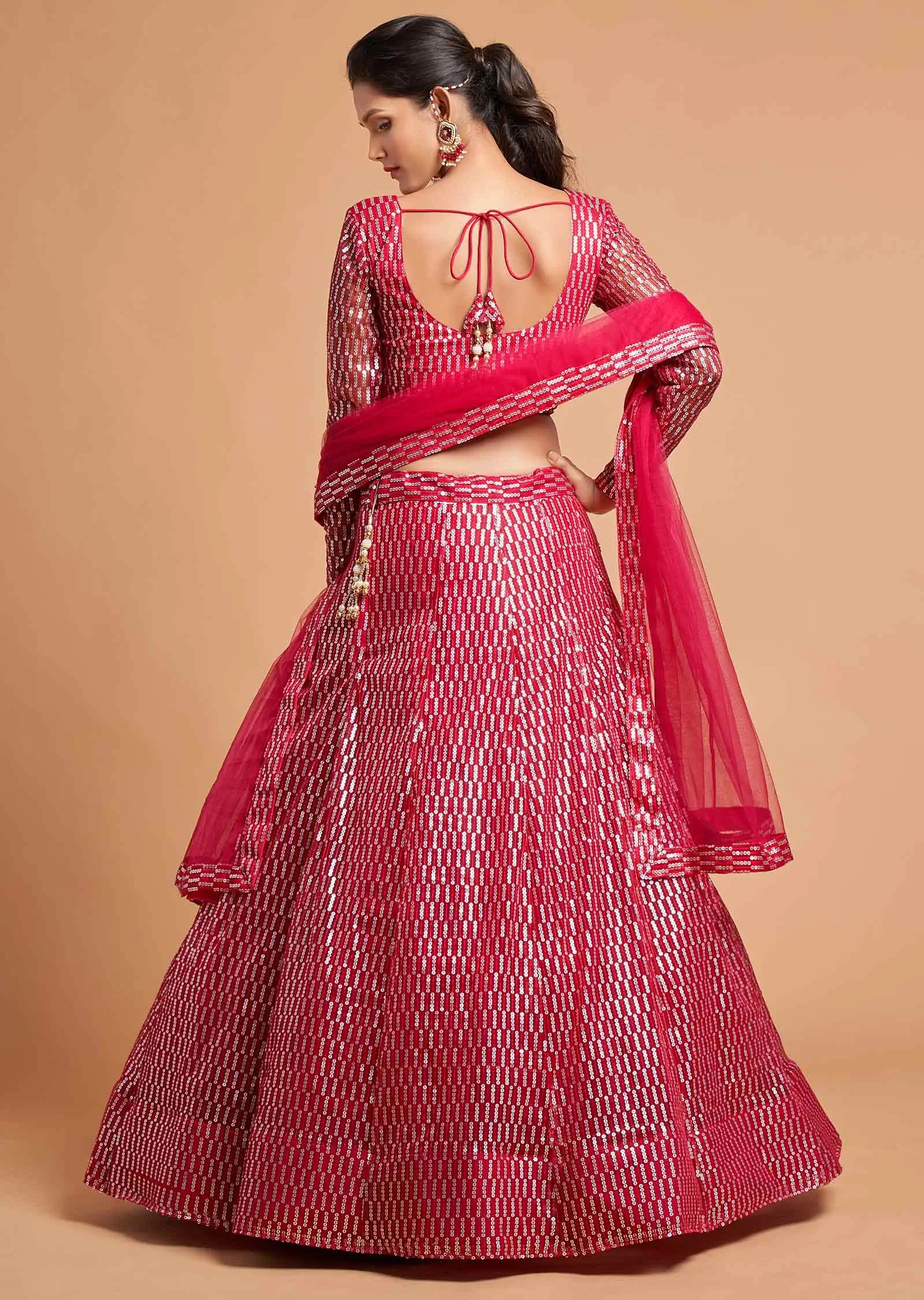 Hot Pink Soft Net Lehenga Choli With Thread And Multiple Sequins Embroidery Work