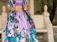 Lavender Tussar Silk Floral Printed Lehenga Choli