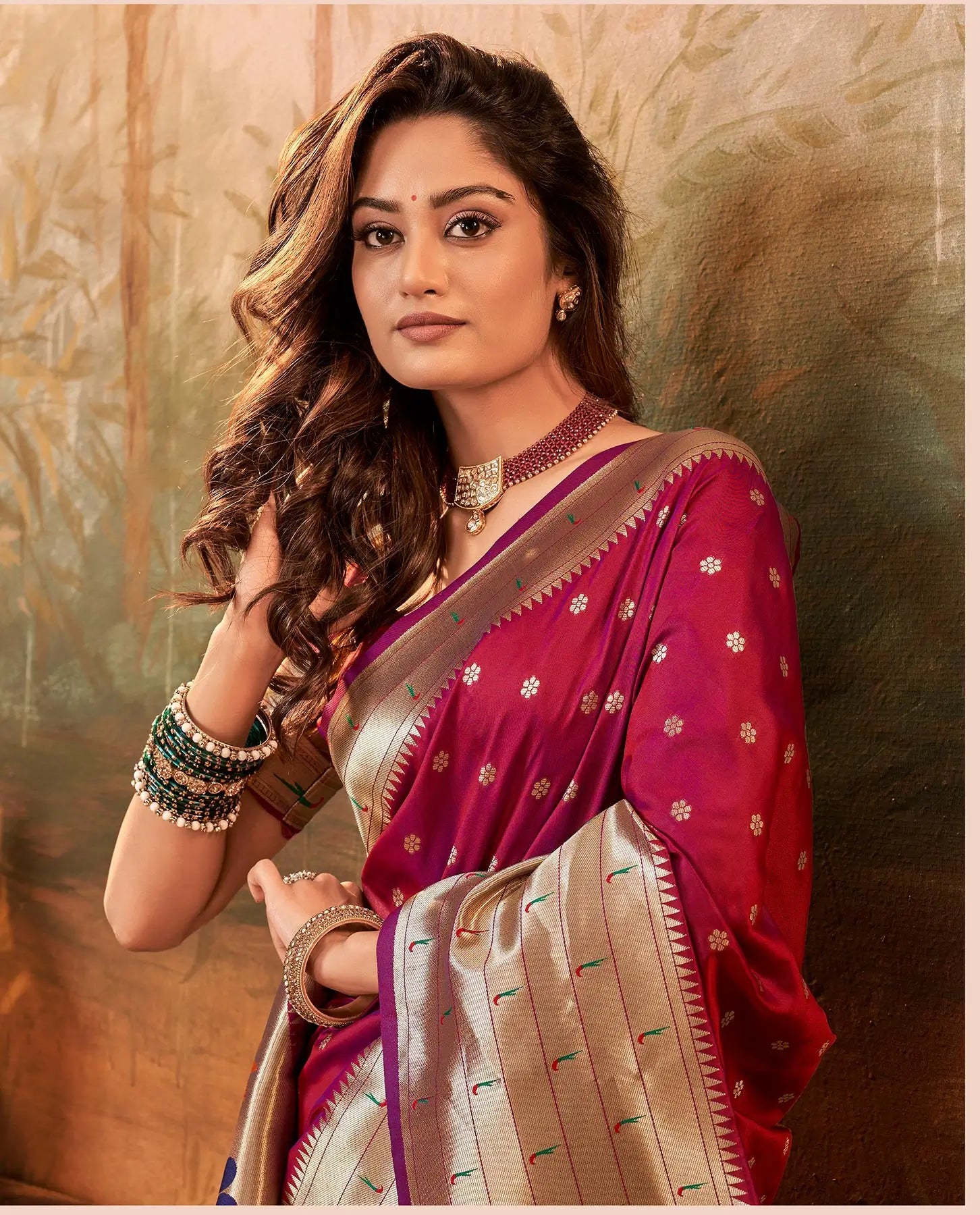Maroon Paithani Silk Saree with Woven Border & Pallu