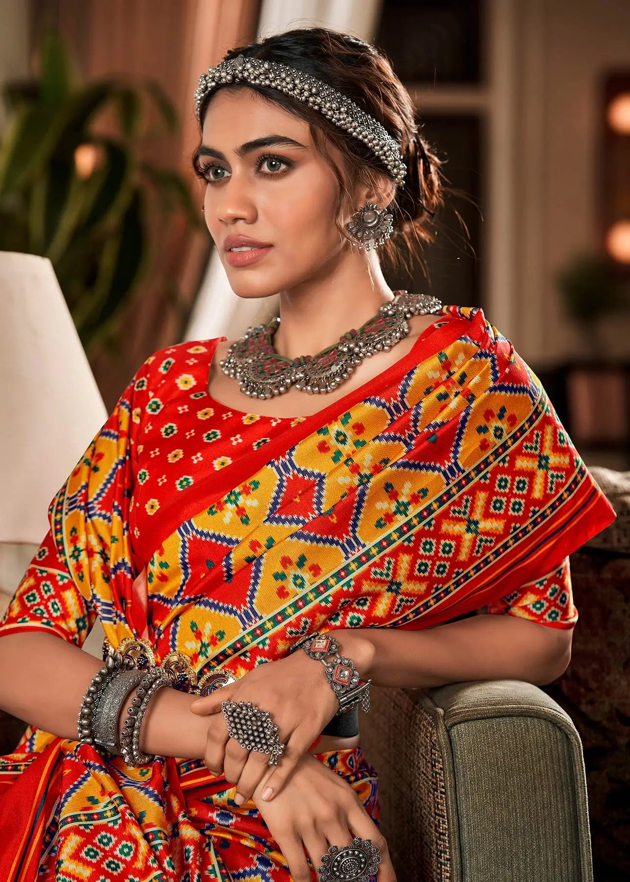 Multi Color Handloom Silk Saree with Patola Print & Tassel Pallu