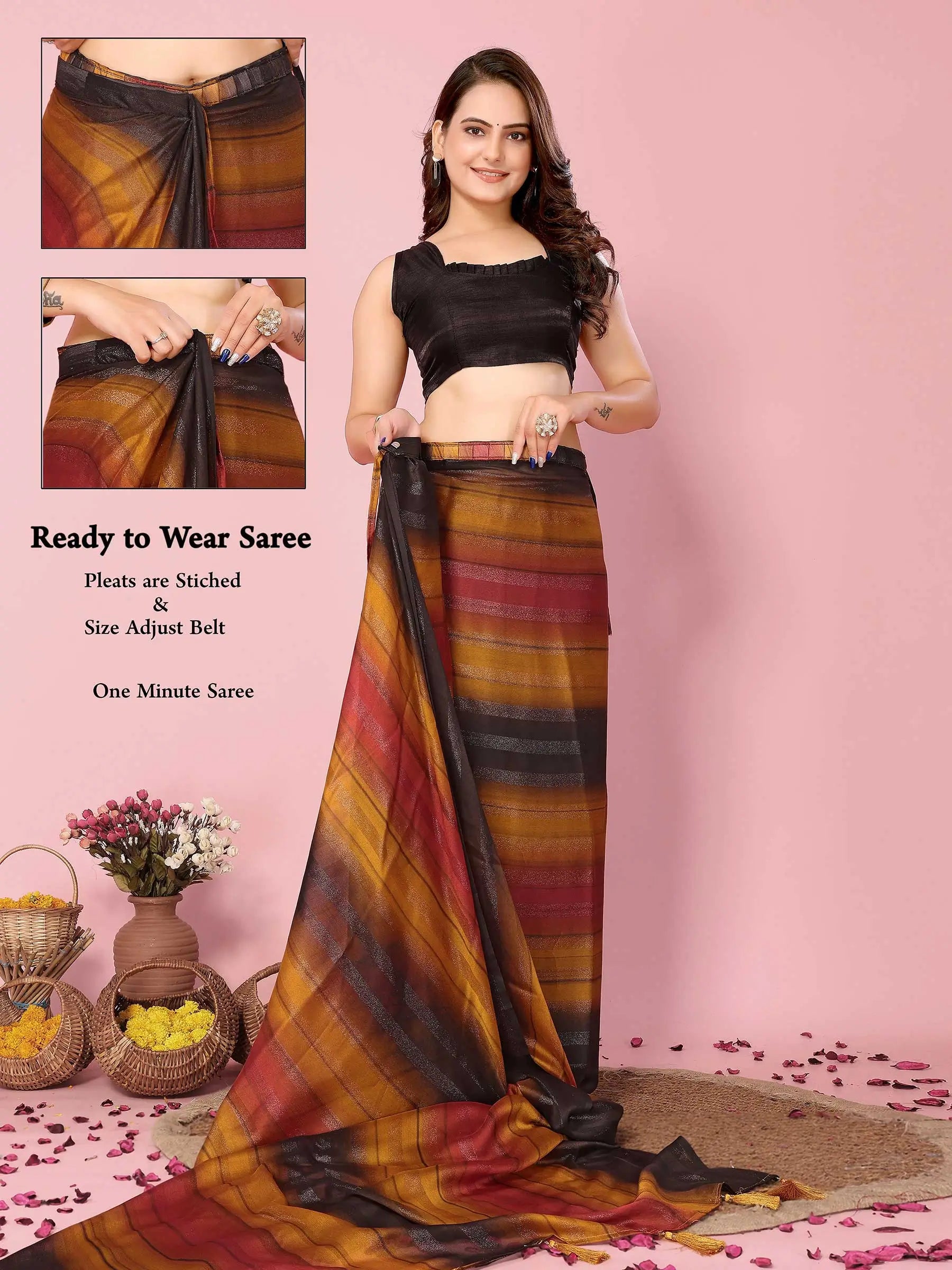 Multi Color Wevon Designer Printed Ready To Wear Silk Saree
