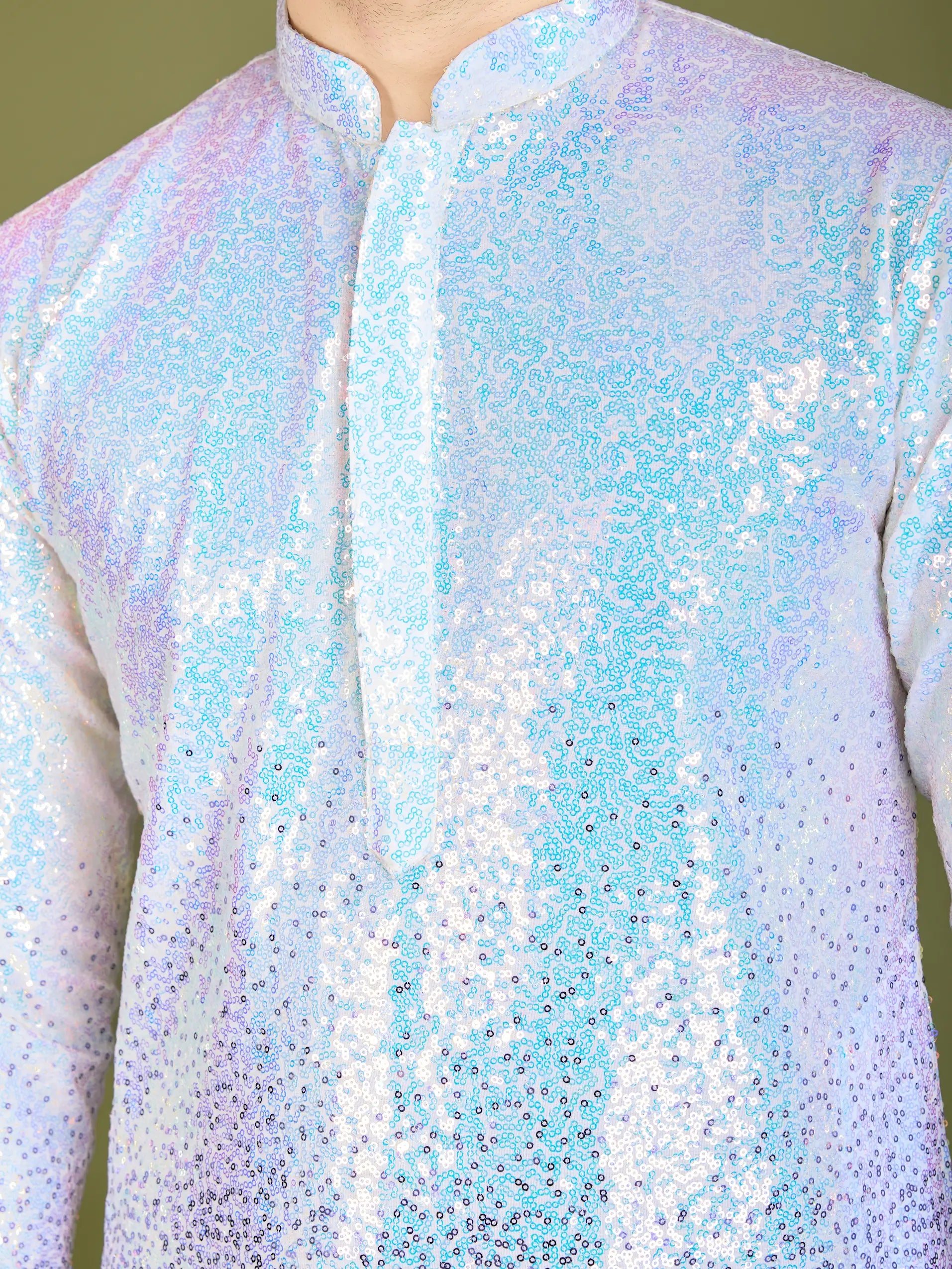 This exquisite Ombre Purple Georgette fabric kurta features intricate thread and sequins embroidered work, making it perfect for adding a touch of elegance to any special occasion. Ideal for weddings, religious ceremonies, and cultural events, it beautifully blends tradition with modern flair. The delicate embroidery adds a timeless charm, elevating the overall aesthetic.