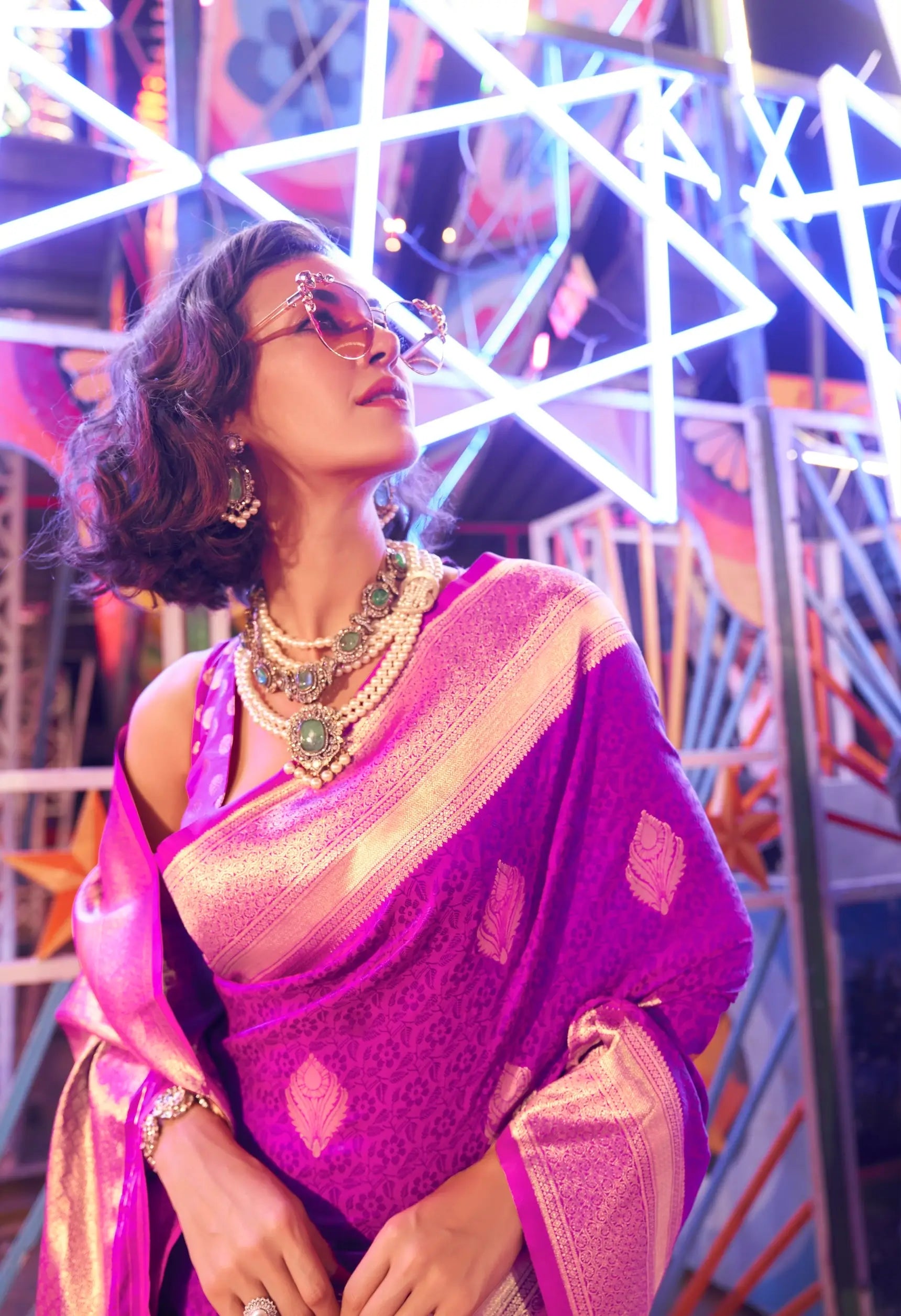 Pink Handloom Weaving Silk Saree With Handwoven Art