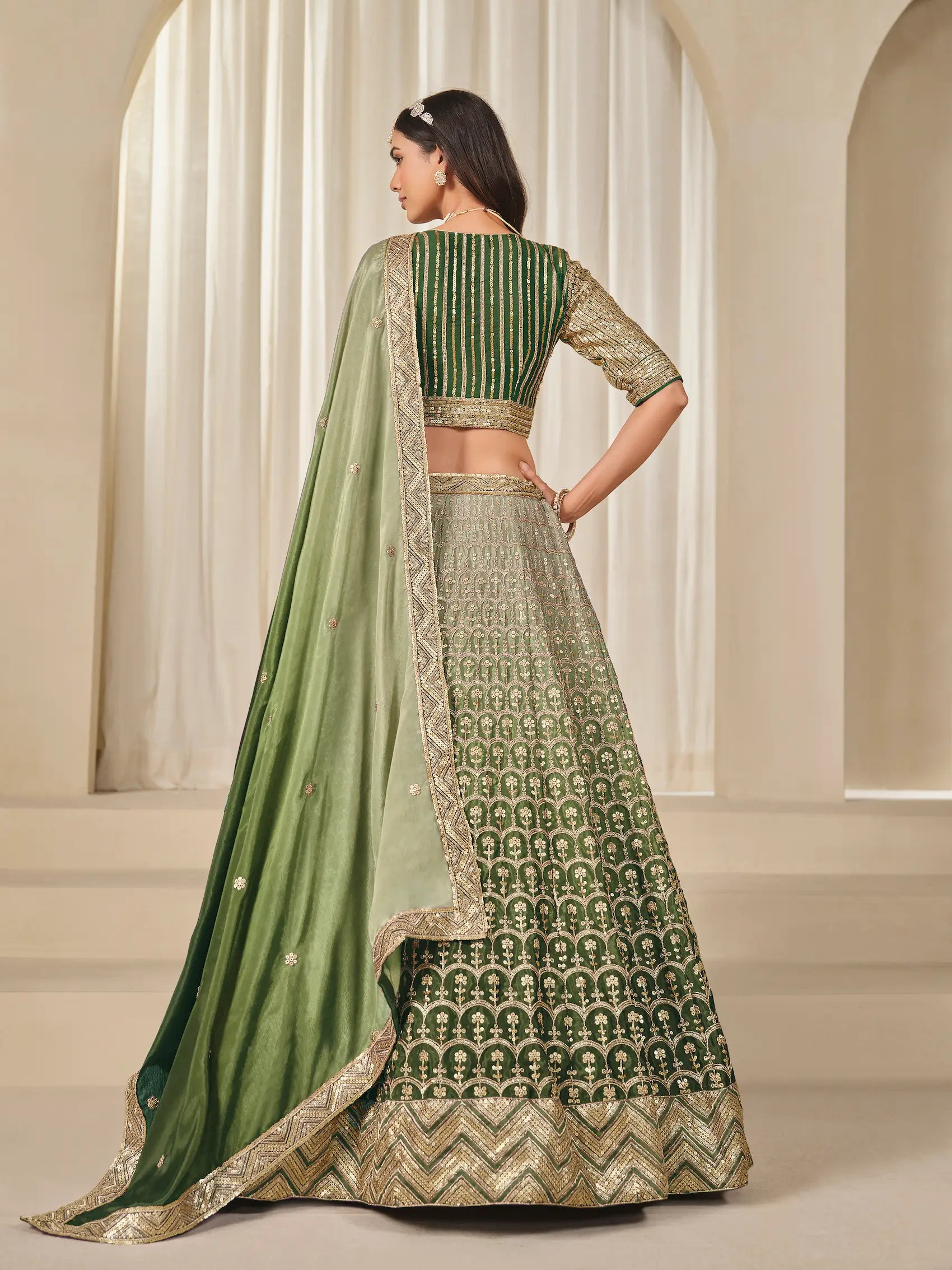 Shaded Green Chinon Silk Embroidery Work Lehenga Choli