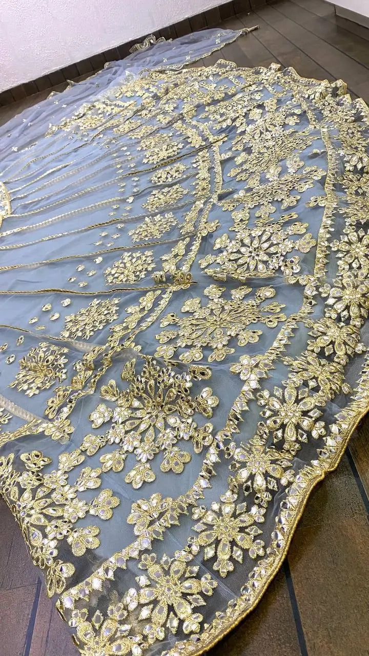 Sky Blue Net Lehenga Choli With Foil Mirror & Zari Work