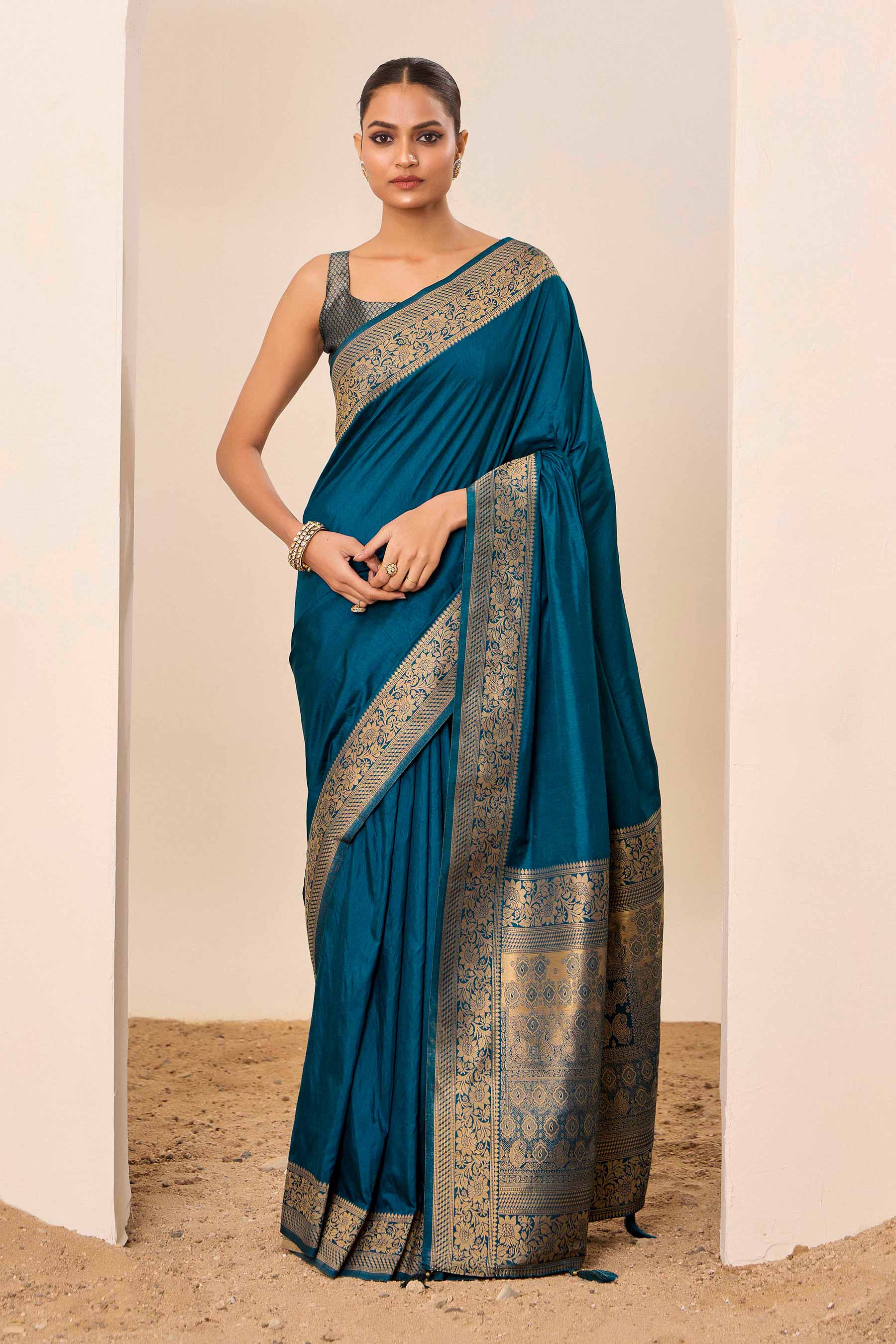 Teal Blue Dolla Silk with Wevon Galla Designer Work Saree