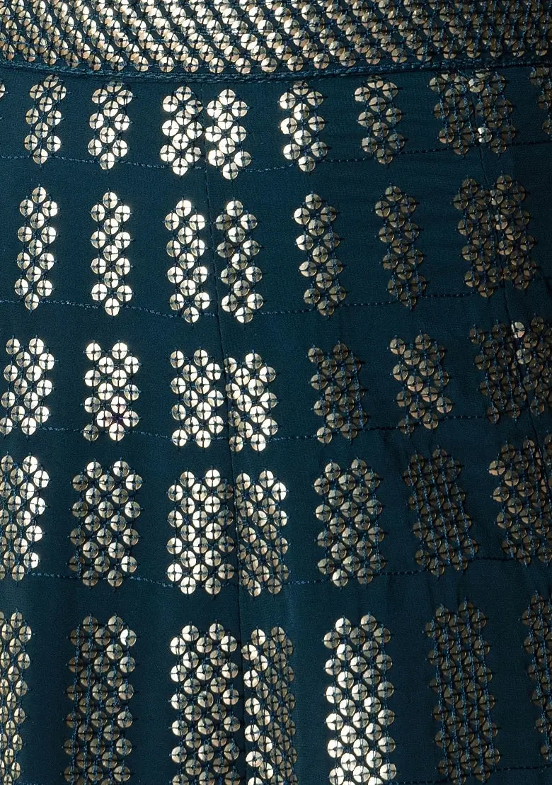 Teal Blue Georgette Sequins And Thread Embroidered Lehenga choli