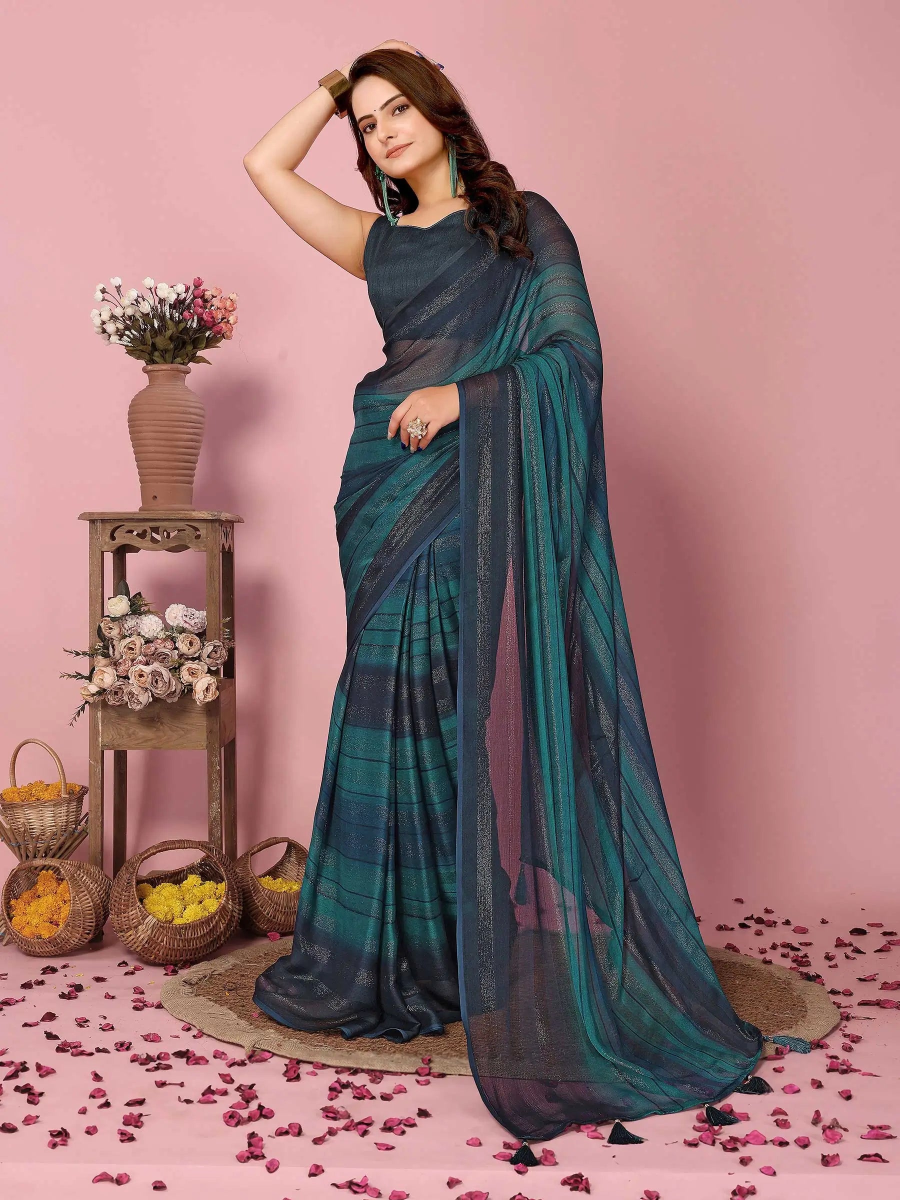Teal Blue Wevon Designer Printed Ready To Wear Silk Saree