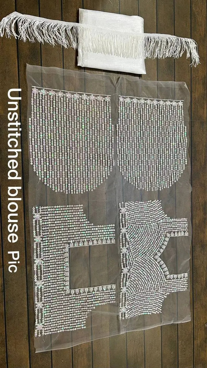White Net Saree With Sequins & Thread Work