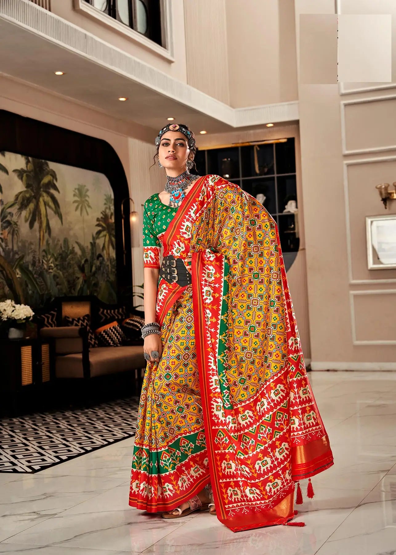 Fabric : Handloom Silk With Patola Print With Tussles Attached On Pallu