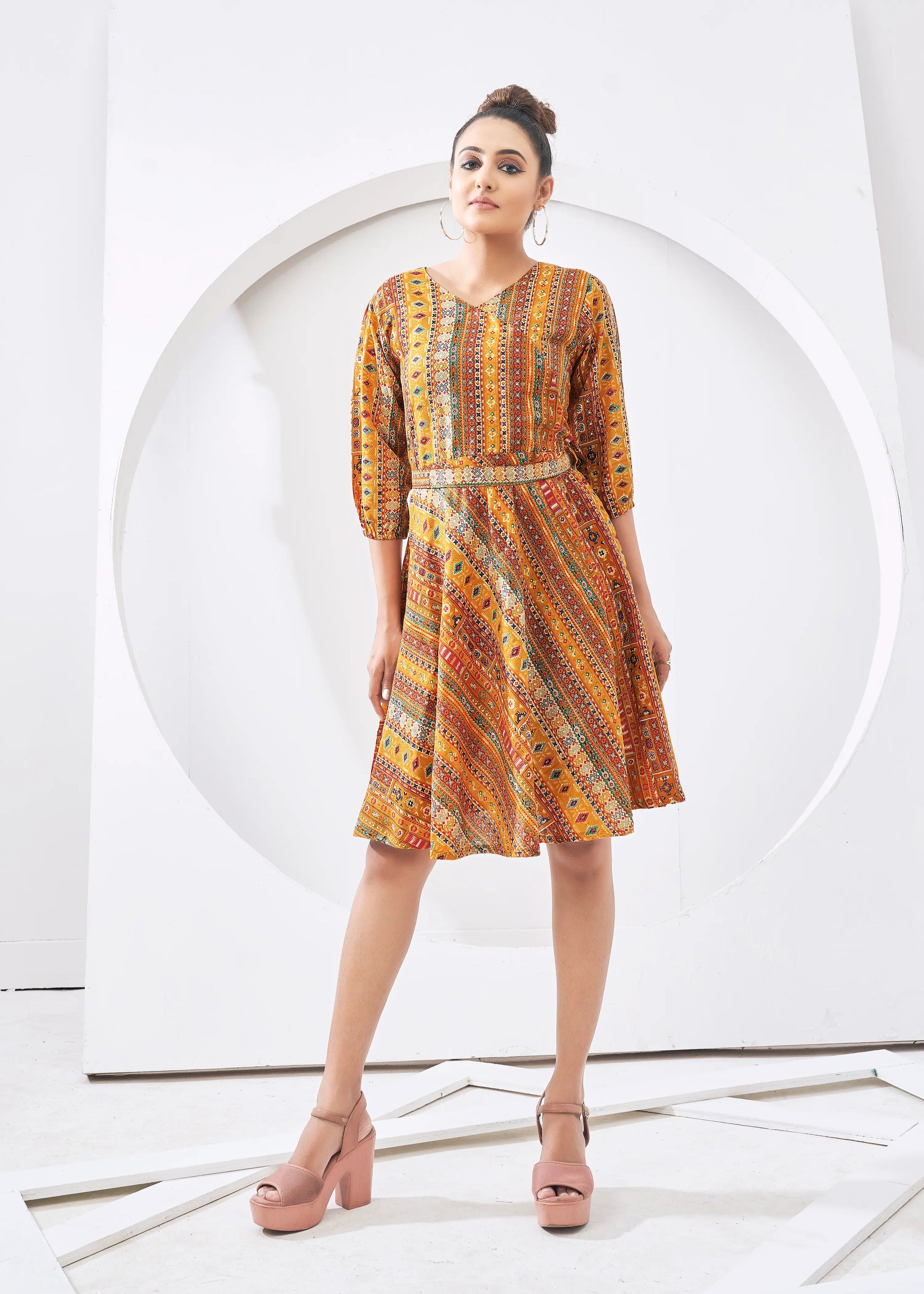 Yellowish Orange Round Neck Kurta