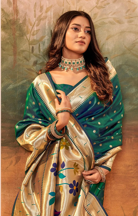 Teal Blue Poly Cotton Lehenga Choli with Zari Weaving Work